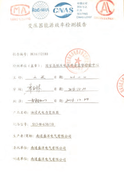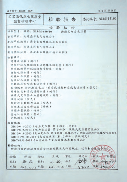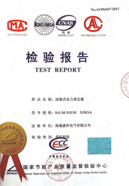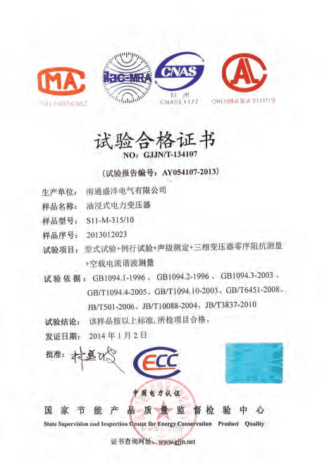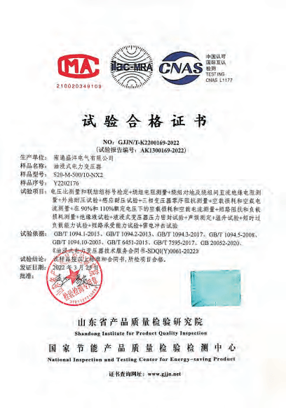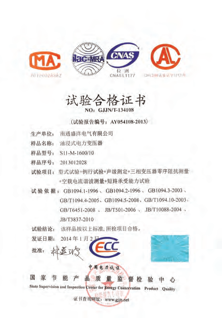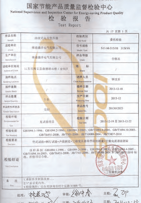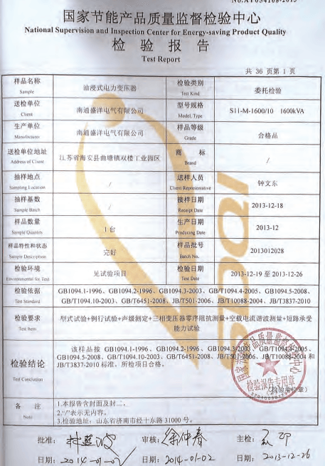Our company has passed the ISO9001 quality management system, ISO14001 environment management system and PCCC certification. Our products meet China's national standards and IEC standards. We have got the approval of the National Transformer Quality Supervision and Inspection Center. We have won honored certificates like Jiangsu High and New Technology Enterprise and Jiangsu Quality Believable Products. Every transformer undergoes a series of tests throughout the manufacturing process, right from the raw material stage to the final stage. All routine tests are carried out at our works as per China's national standards and other International Specifications. Type tests for impulse withstand short Circuit strength etc have been conducted on representative ratings and voltage classes, at approved national test houses. The ISO certificate has also been revalidated recently. In addition, we company always pay more attention to strengthening and improving the quality awareness of our staff, through carrying out regular personnel management and professional skills training, to guarantee management and operational capability to penetrate into every aspect of the sense of quality.